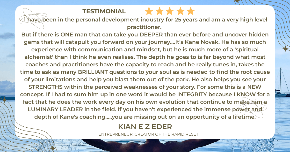 Kane’s approach goes beyond mindset, beyond skill-building, beyond performance visibility coaching. His work deconstructs and reconstructs the subconscious patterns that shape who you are at the deepest level, so you can lead, decide, and act from a place of unshakable certainty, magnetic presence, and absolute alignment.